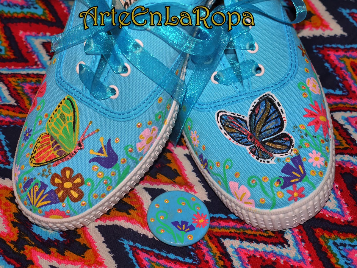Zapatillas Pintadas a mano flores y mariposas ( Zapatillas customizadas mariposas y flores ) CON BROCHE DEMADERA PINTADA A JUEGO!